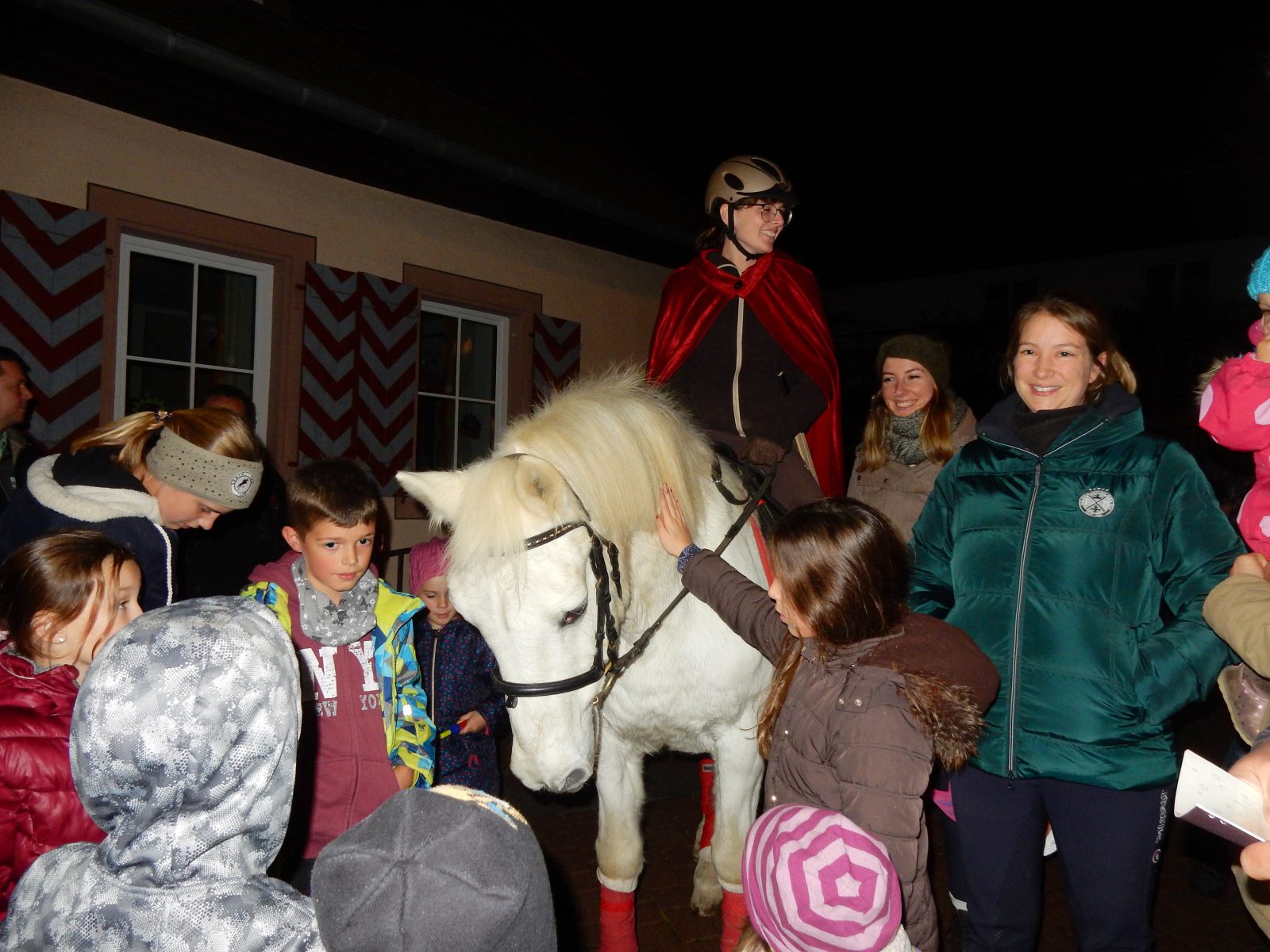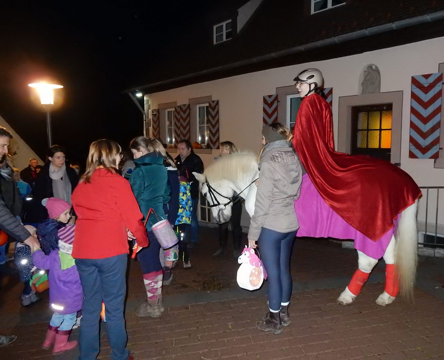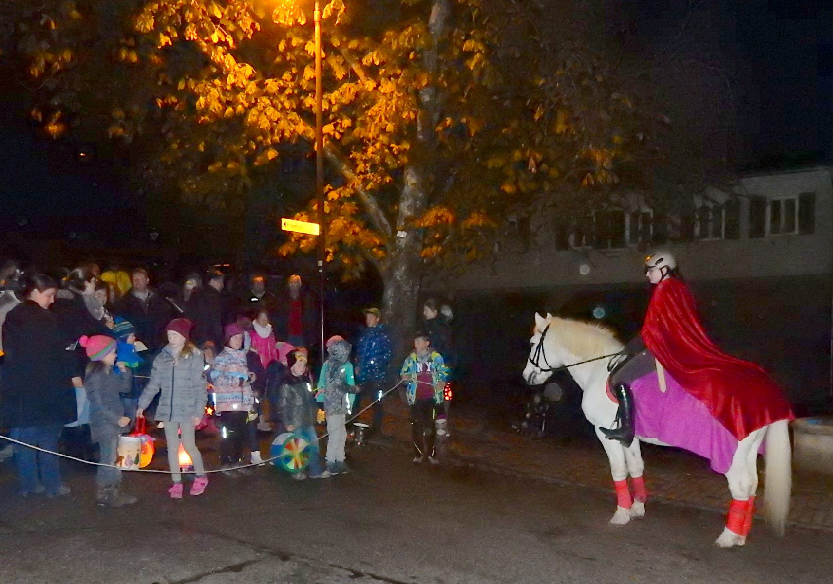 Mit bunten Laternen und leuchtenden Augen zog eine große Kinderschar mit ihren Familien und St. Martin auf dem Pferd, (Jana Schwab) ins „Unterdorf“ von Leinstetten. Als Abschluss gab es auf dem Kirchplatz gebackene Martinsgänsle, Speisen und Getränke für Alle.
