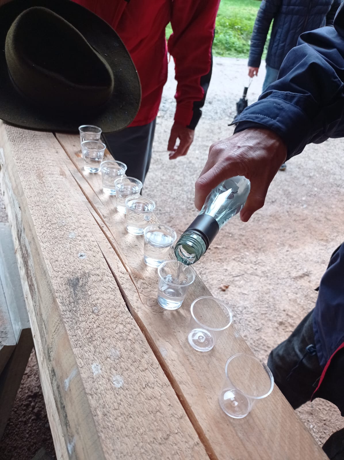 das war ja eine ziemlich feuchte Angelegenheit, welche ihr trotz Nass von oben und den dickeren Tropfen von “unten” gemeistert habt. Zum Glück mit einem Schnäpsle zur Aufmunterung.