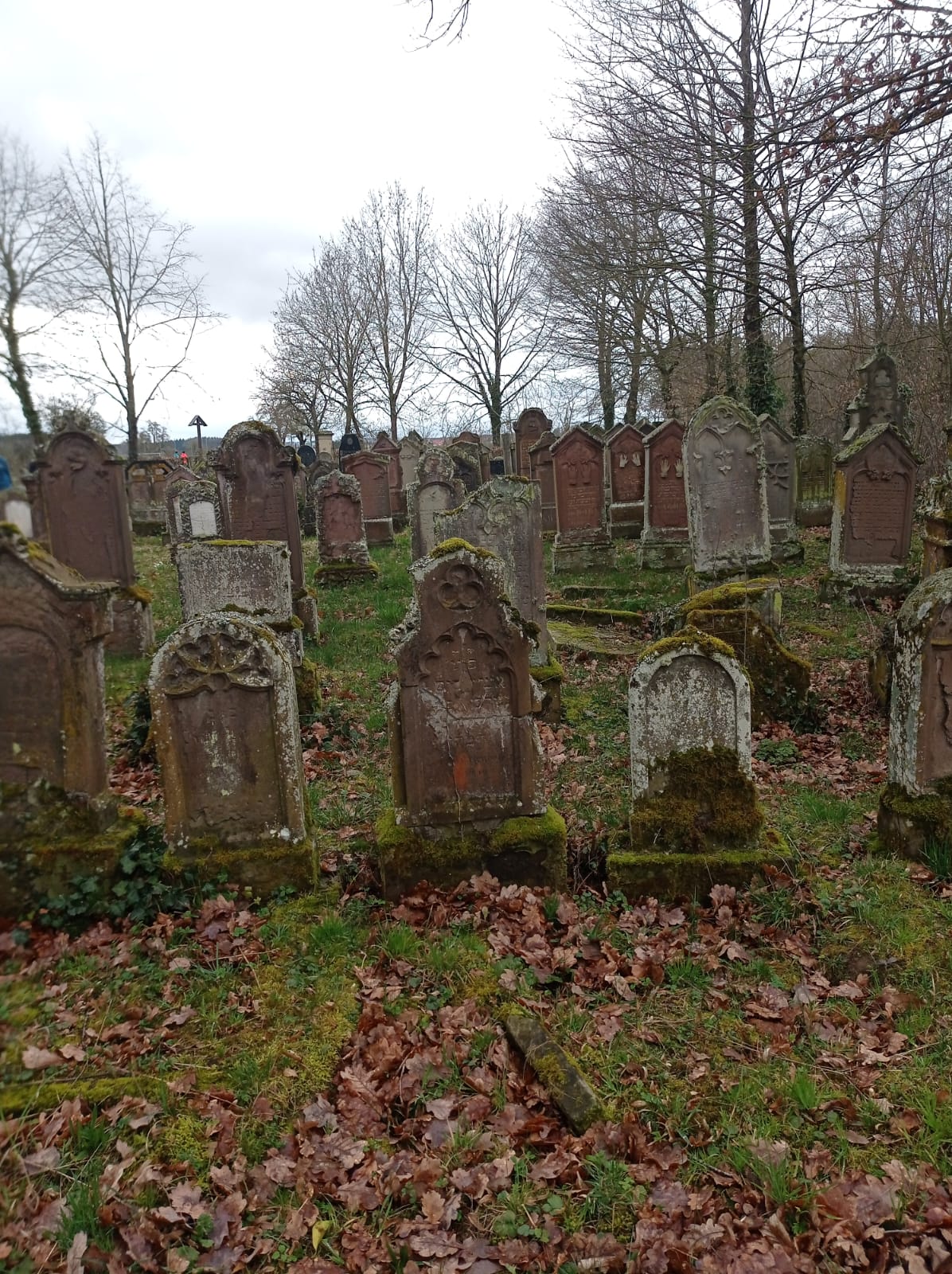 Auf der Empore wurde eine Dauerausstellung gezeigt. Sie dokumentiert Lebensgeschichten Baisinger Juden. Und zu all dem erfuhr man von Horst Wissenswertes und höchst Interessantes. Nach dieser beeindruckenden Besichtigung genoss man den Spaziergang durch den Ort und hinaus zum jüdischen Friedhof. Auch auf diesem Gang zwischen den Gräbern hindurch erfuhr die Gruppe Unglaubliches und Denkwürdiges über das Judentum und dessen Bräuche.