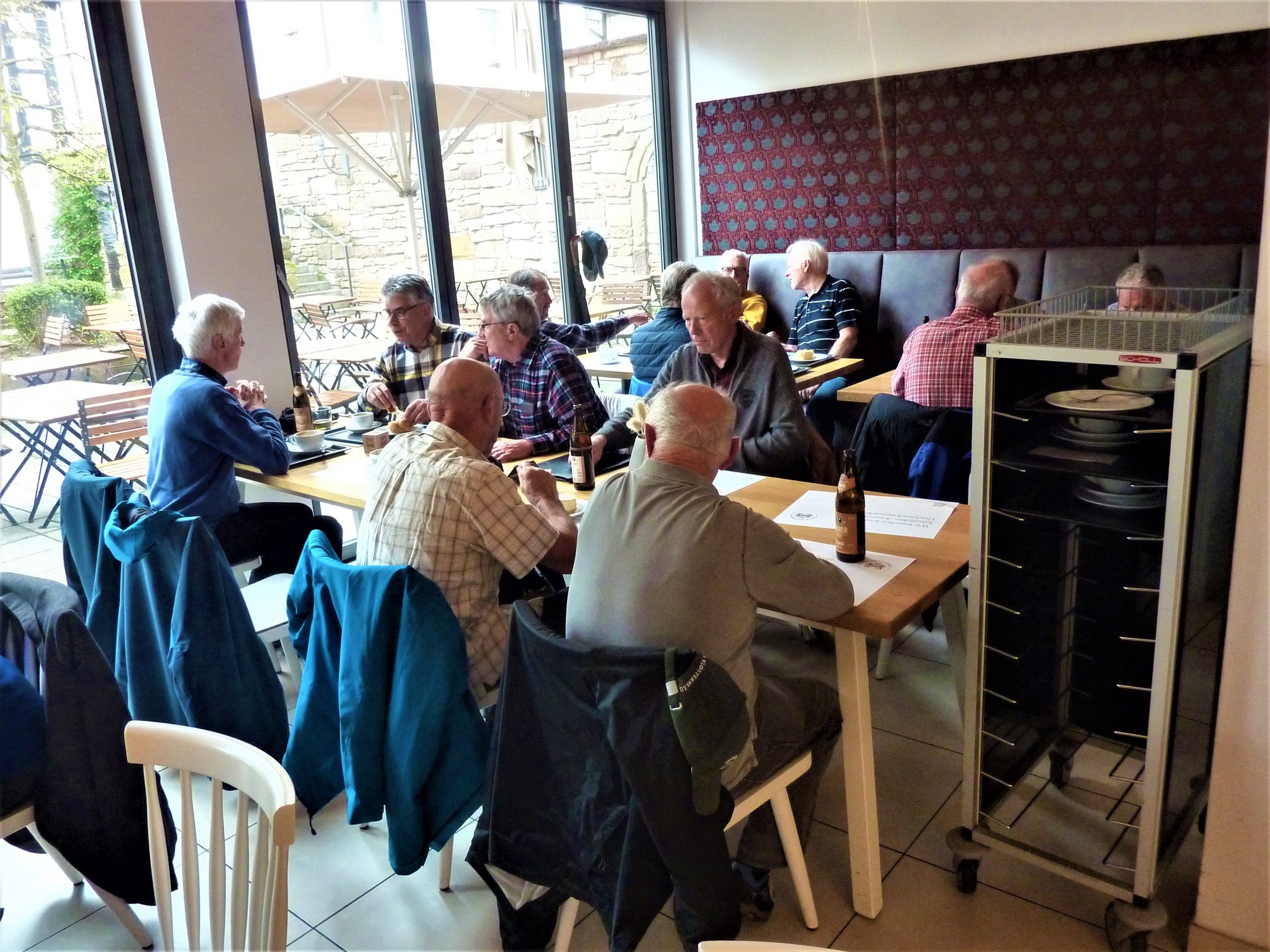 In den alten Gemäuern des “Backhaus Mahl“ fand natürlich noch die traditionelle Einkehr statt. Danach bedankte sich Organisator Gotthard im Namen der DienstagsWanderer bei Karl-Heinz für die perfekte Stadtführung mit der Hoffnung auf ein Wiedersehen beim Pfingstmarkt in Leinstetten.