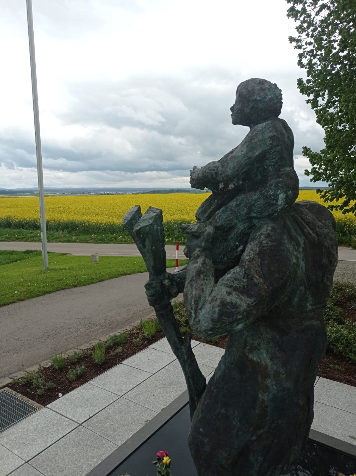 So lautete die Information von Hans Rebholz. Dunningen und wandern, Kapelle? Da war man schon gespannt. Vom Parkplatz in der Dorfmitte musste zuerst die stark befahrene Durchgangsstraße überquert werden. Für Rentner stets ein kleines Abenteuer. Dann ging es bergauf und da stand sie schon, die Kapelle. Nein, es war die falsche. Weiter, vorbei am Natur-Park, den sich die Natur tatsächlich zurückgeholt hatte. Ein Schild – “Sankt Christophorus Kapelle“. Raus aus Dunningen, raus auf die Felder. Und da stand sie dann auch, aber ganz anders als man sie sich vorgestellt hatte.