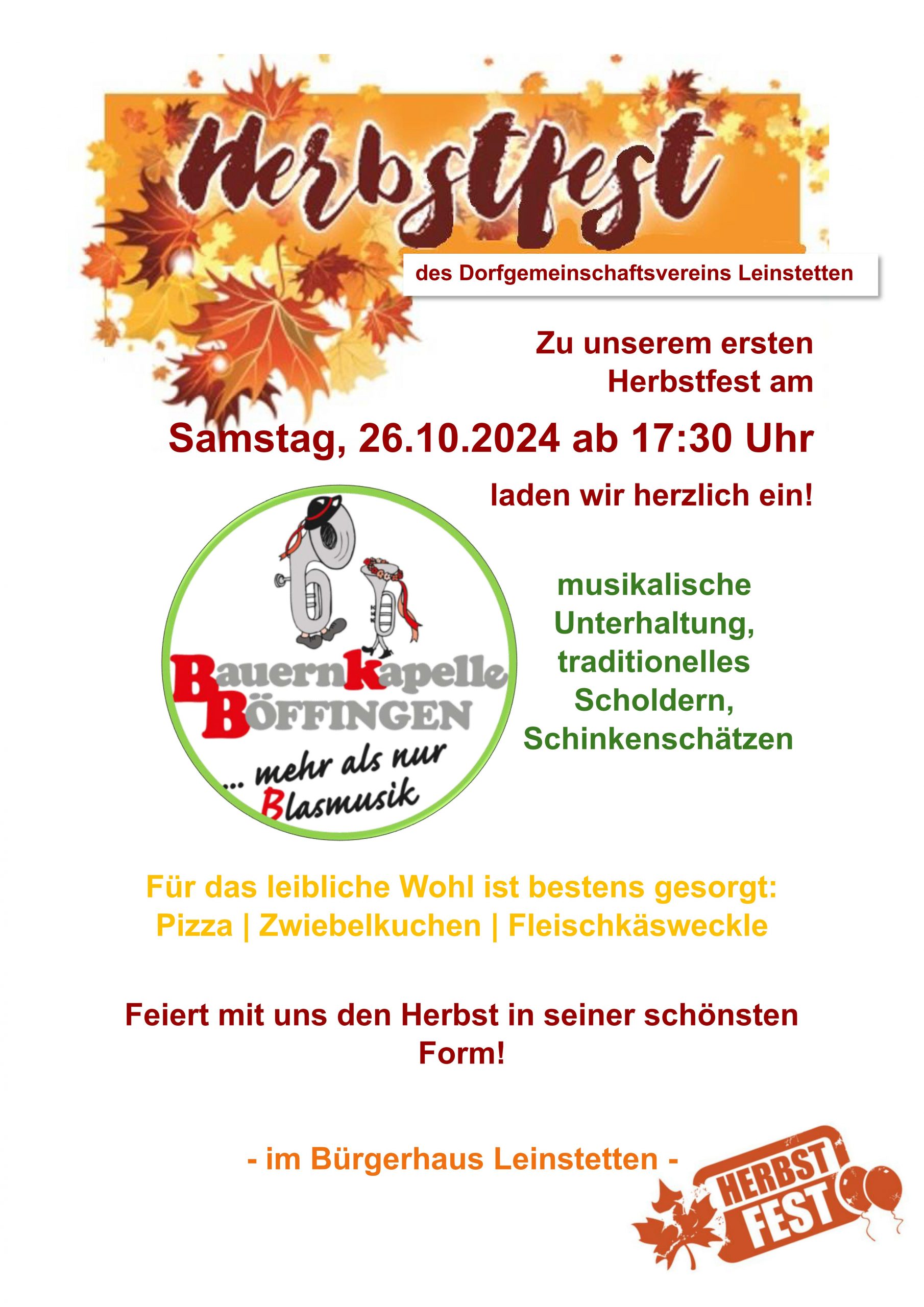 Herzliche Einladung zum Herbstfest am kommenden Samstag 26.10.2024