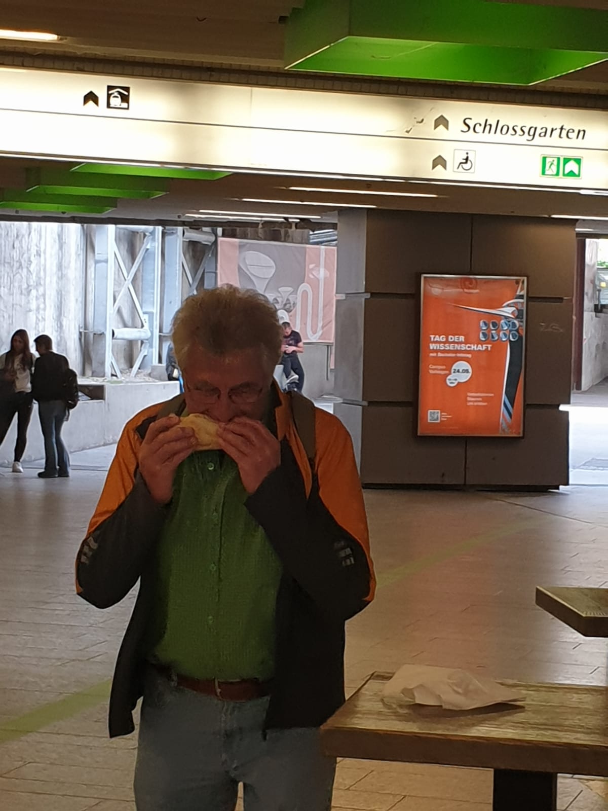 Nein, noch war nicht Ende der Schlemmerei. Fischweckle. Was wäre Stuttgart ohne ein Fischweckle. Im Stechschritt durch die Königsstraße, Treppe runter, anstehen. Hinter Bruno natürlich. Immer mehr Kameraden benahmen sich, als ob es den ganzen Tag noch nichts zu essen gegeben hätte. Ein Fischweckle, nein, zwei und sogar drei wurden hinuntergeschlungen.