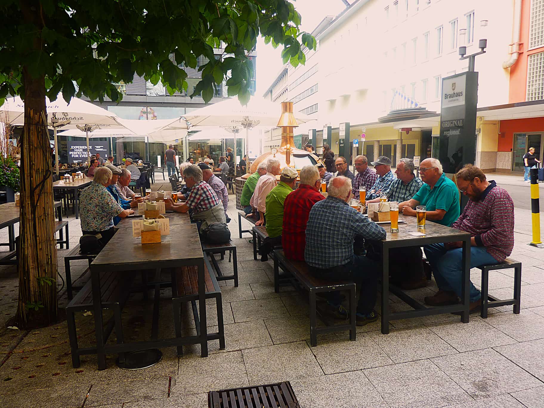 Entspannt saß man schließlich in der Eisdiele La Luna am Marienplatz. Amaretto-Becher, Joghurt-Becher, Coppa Primavera, Spaghetti-Eis, herrlich. Als nächsten Stopp in Bahnhofsnähe hatte Peter das Brauhaus Schönbuch ausgesucht. Volltreffer. Gemütlich ließ man den Tag bei zahlreichen Biersorten, Flammkuchen und Wurstsalat ausklingen.
