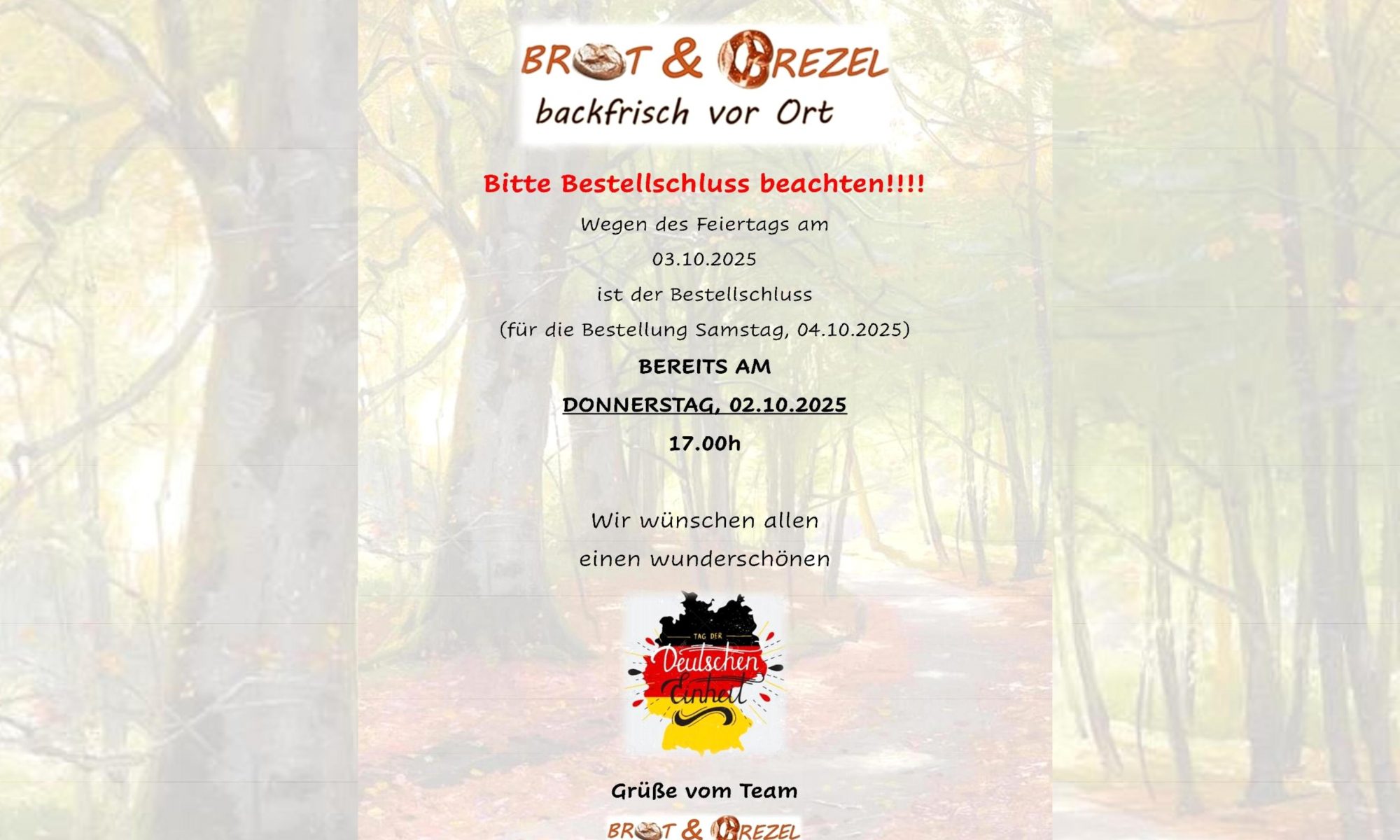 Wegen des Feiertags am Freitag ist der Bestellschluss für Samstag, 04.10.2025, bereits am Donnerstag, 02.10.2025 um 17.00h!