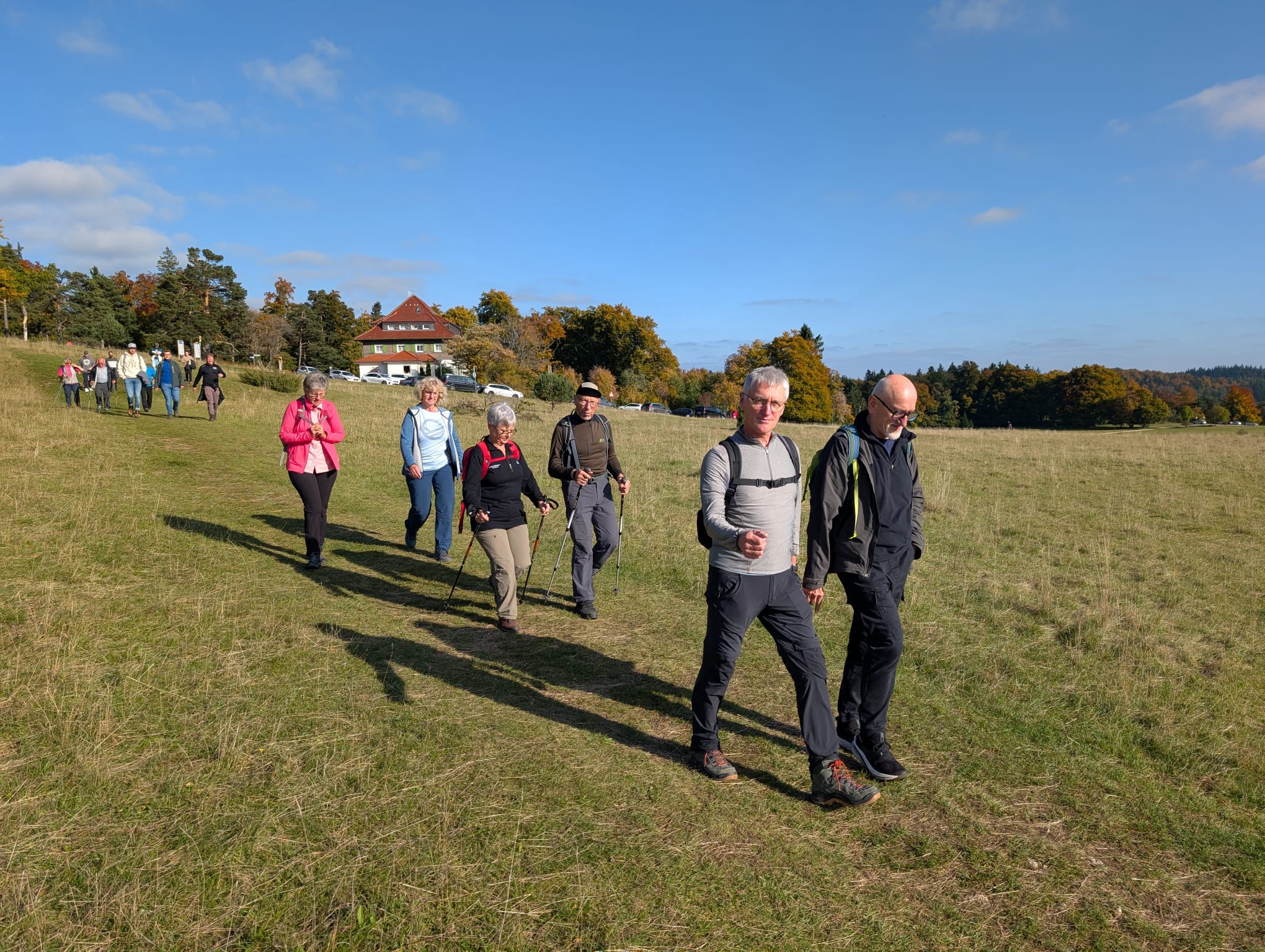 Entlang des Premiumwanderweges „Hohenzollern-Panorama“ führte die Strecke durch die abwechslungsreiche Landschaft der Schwäbischen Alb – mit bunten Laubwäldern, steil abfallender Traufkante und herrlichen Aussichten. Immer wieder boten sich beeindruckende Ausblicke auf die Burg Hohenzollern, die majestätisch über der Region thront und ein beliebtes Fotomotiv war.