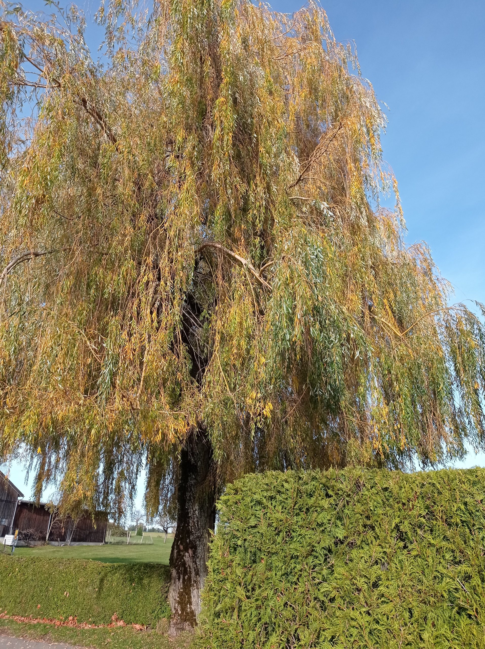 Vorbei an der Blockhütte, vorbei am Büffelhof und vorbei an Ingos Ziegenparadies ging es herrlich dahin. Strahlender Sonnenschein, angenehme Temperaturen, gut aufgelegte Wanderer. Auch die traurige Trauerweide konnte die Stimmung nicht vermiesen.