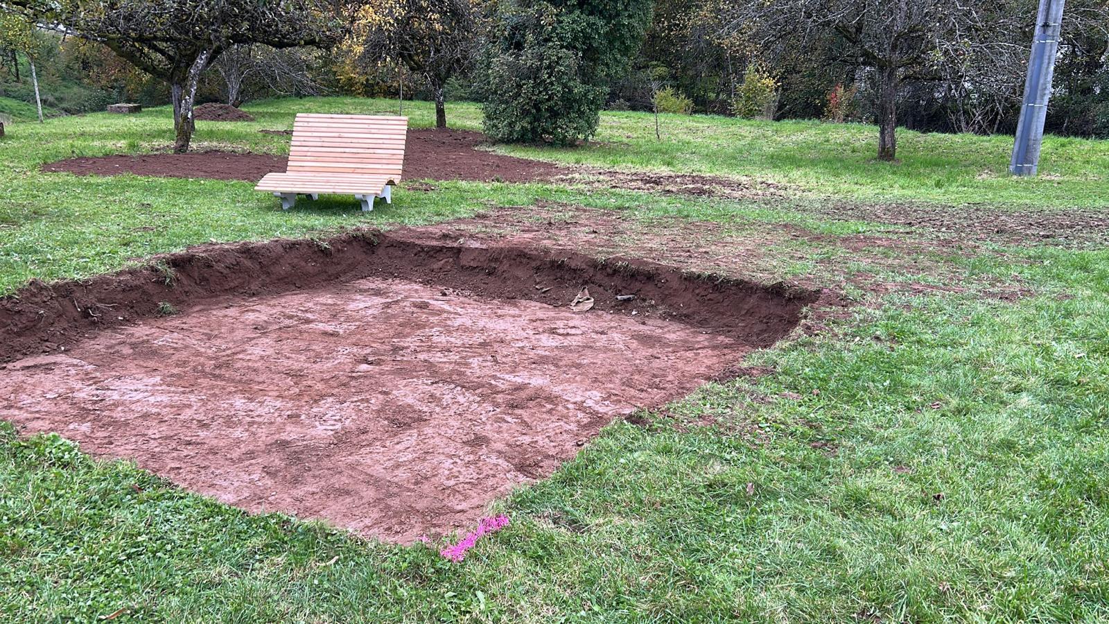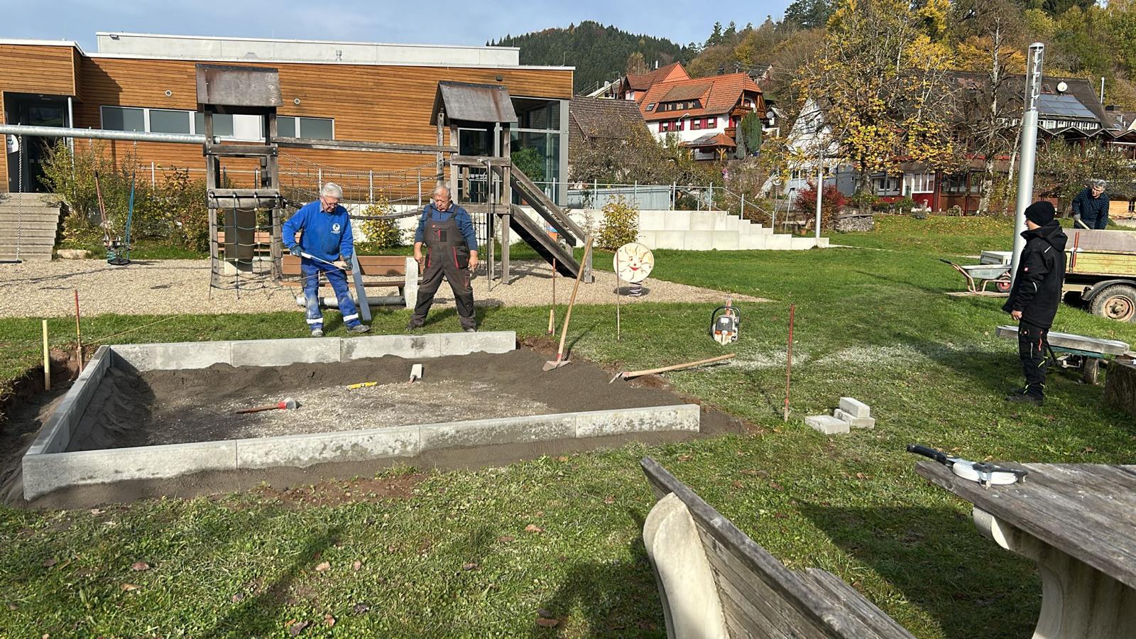 Nunmehr steht noch die Errichtung eines Spielhäuschens auf dem Arbeitsplan.