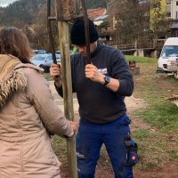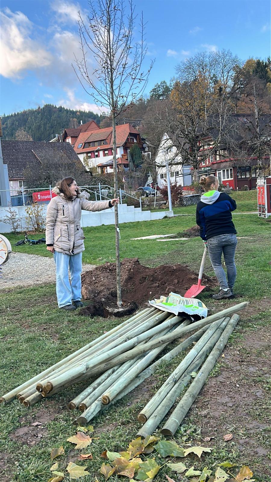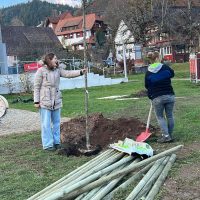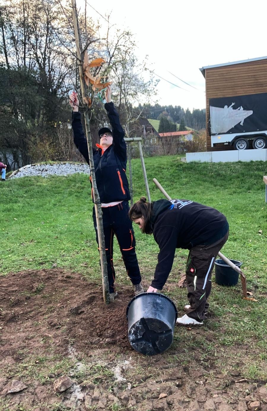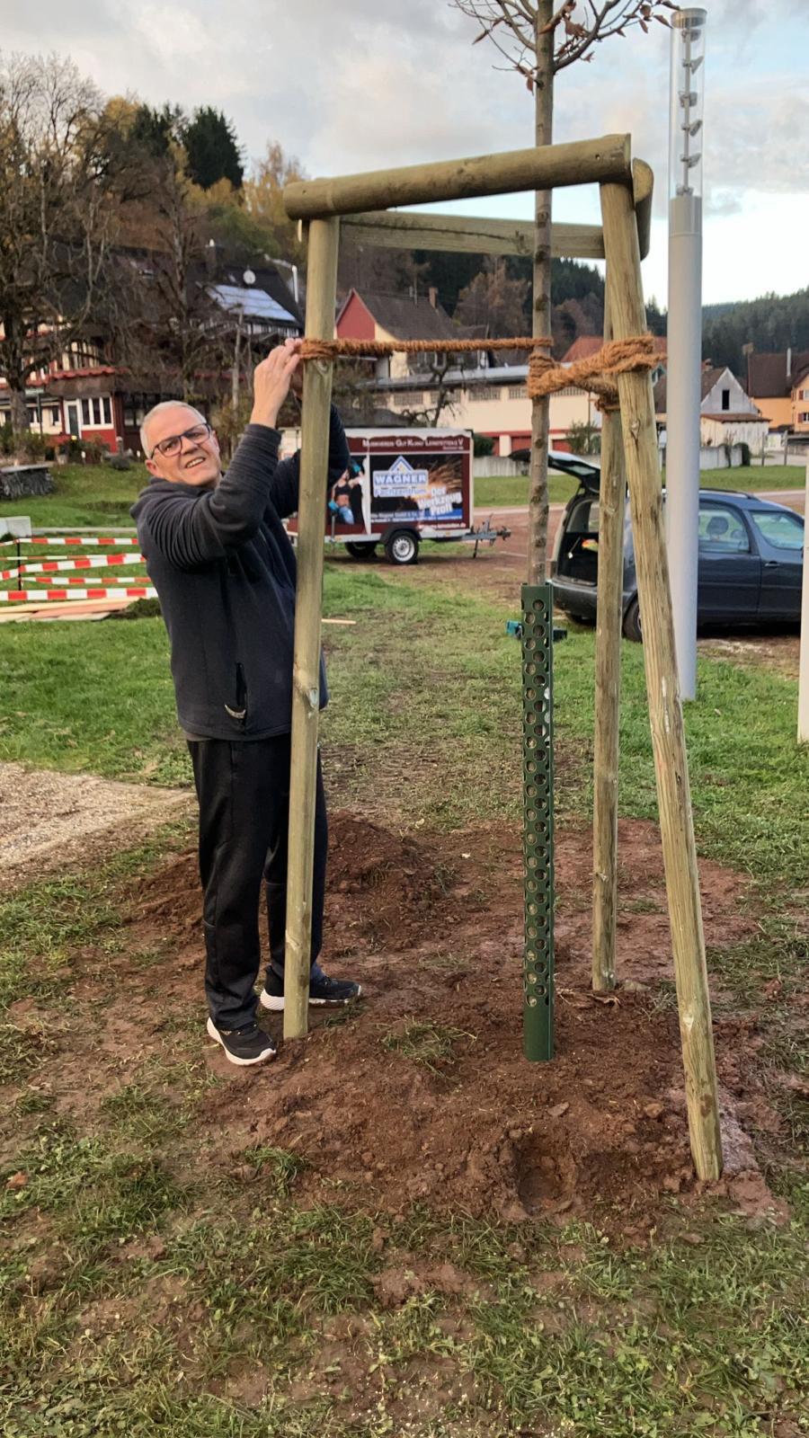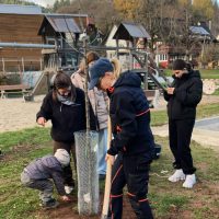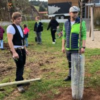 Tatkräftig waren Kinder, Eltern und Großeltern zur Stelle und halfen bei den ersten vorgesehenen Arbeiten mit. So wurde ein Stück ausgebaggert, um einen großen Sandkasten zu errichten. Mehr Sitzgelegenheiten wurden geschaffen und die Kinder pflanzten mit großem Eifer einen Kastanienbaum, welcher einmal Schatten spenden wird.