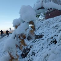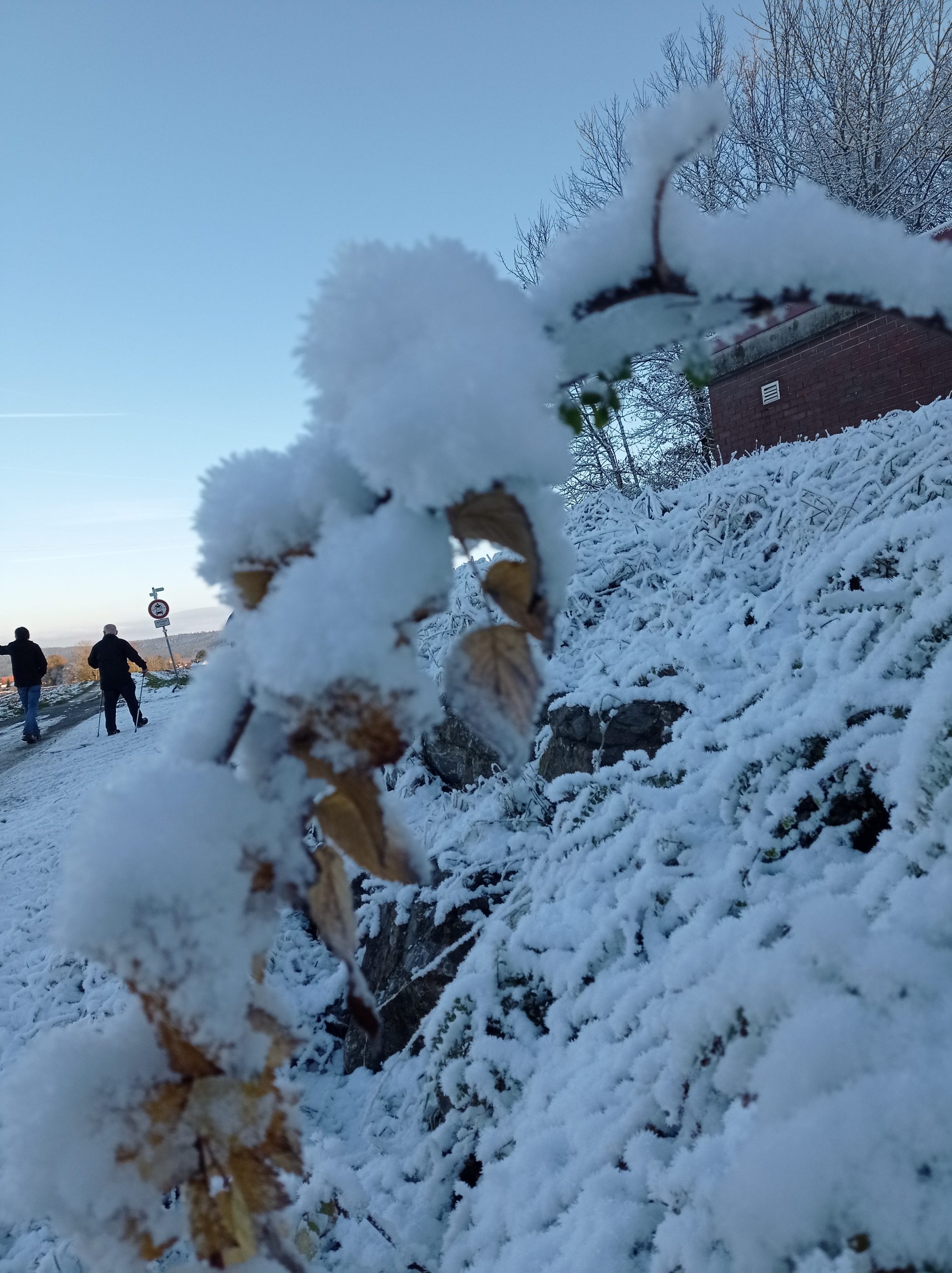 Strahlender Sonnenschein ließ den in der letzten Nacht gefallenen Schnee von den Bäumen auf die ergrauten Häupter tropfen, als man durch den Wald die Steige in Richtung Boll hinaufstieg.