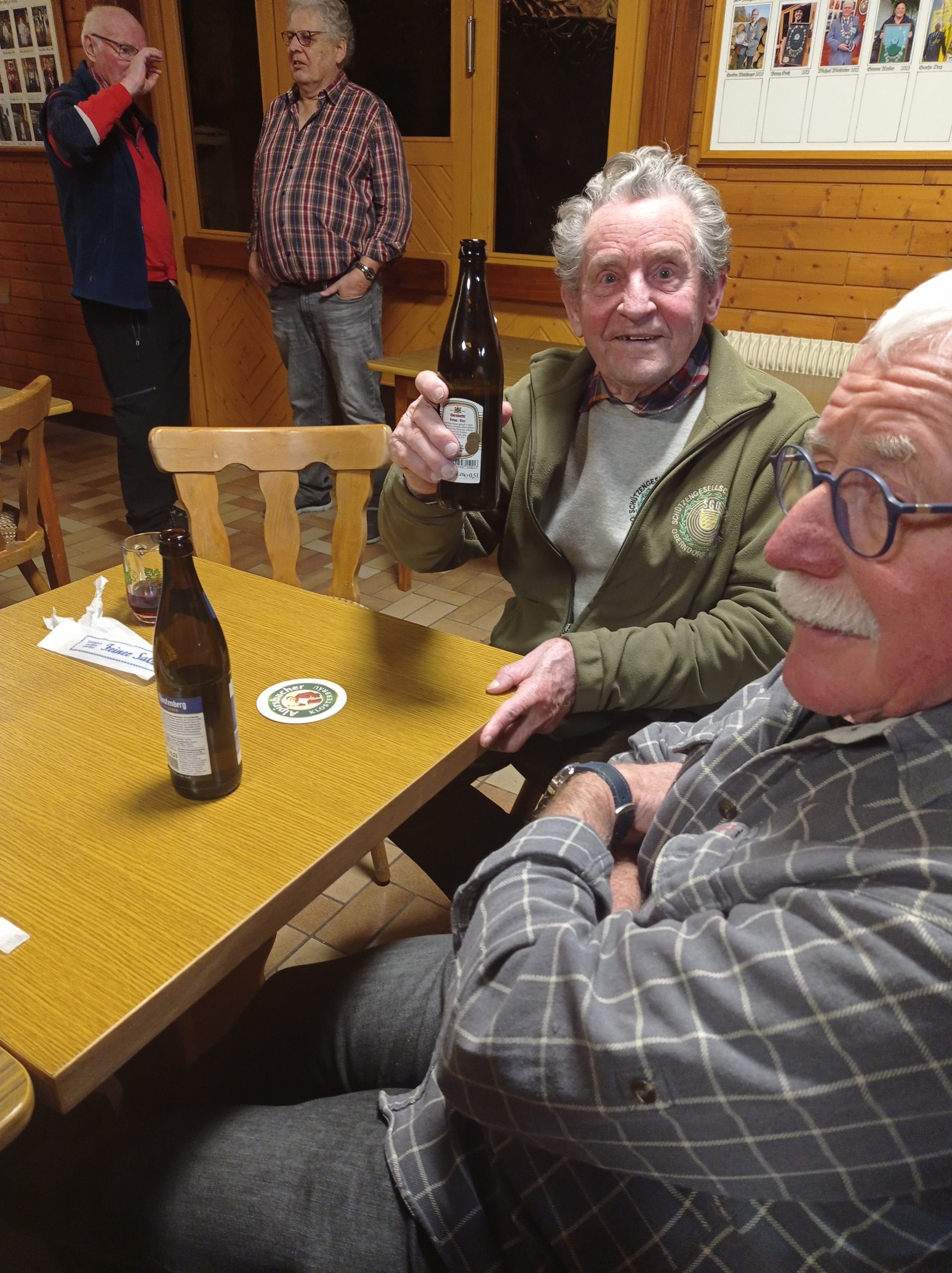 Sacksteil führte nun ein Pfad durch den mit mächtigen Eichen bewachsenen Hang hinunter zum Parkplatz. Bei der Einkehr im Schützenhaus gab es ein Treffen mit dem ehemaligen Leinstetter/Mettstetter Fußballer Helmut Köpcke.
