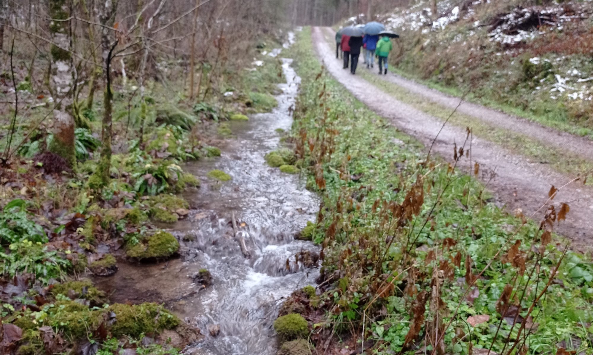 Um 13:30 Uhr war der Trauergottesdienst für Uwe Gscheidle. Da die Mehrzahl der DienstagWanderer diesen besuchen wollten, wurde die Abfahrtszeit um 30 Minuten verschoben. Die Regenwolken ließen sich allerdings nicht verschieben. Mit Schirm,