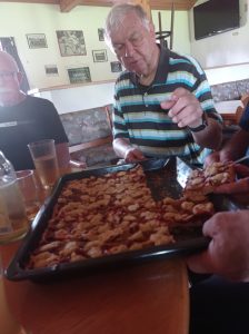 Auf einem wunderschönen Bergpfad ging es zurück zum Sportheim Mühlheim, wo Wanderführer Ludwig die Rolle des Wirts übernahm. Als kulinarischen Höhepunkt servierte er einen leckeren Zwetschgenkuchen direkt vom Blech mit Grüßen von seiner Frau Brigitte.