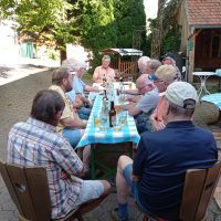 Irgendwo werden die DIENSTAGSWANDERER immer bewirtet. So in dieser Woche, in der Ludwig die Senioren am Sportheim in Mühlheim erwartete.
