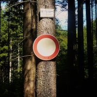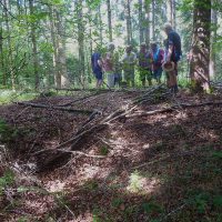 Ein Verkehrsschild an der mächtigen Tanne. Durchfahrt verboten für Fahrzeuge aller Art. Staunend standen die Wanderer dann an der ersten Wolfsgrube. So ändern sich die Zeiten. Vor 100 Jahren wurden die Wölfe ausgerottet, jetzt werden Millionen ausgegeben, damit der Wolf ….na, ja.